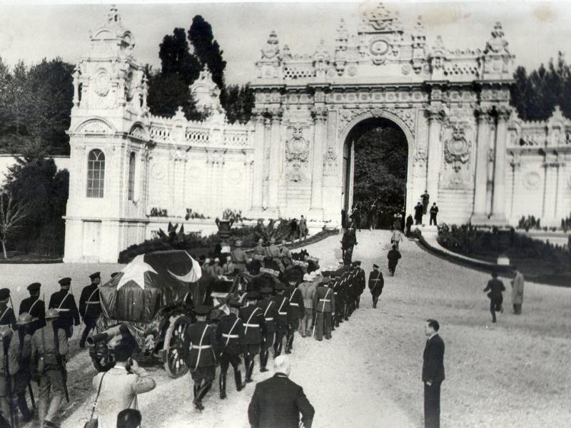 Atatürk’ün naaşı, 19 Kasım 1938’te saat Dolmabahçe’den çıkarılarak top arabasına konuldu. Kortej, Tophane, Karaköy, Köprü yolu, Eminönü Meydanı, Bahçekapı, Sirkeci, Salkımsöğüt, Gülhane Parkı’ndan geçerek, Sarayburnu’na geldi. Yüzbinlerce kişi caddelerde ağlayarak Atatürk’ü uğurladı.