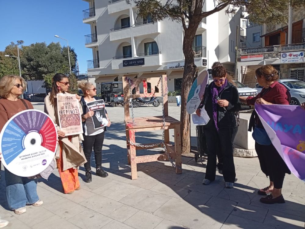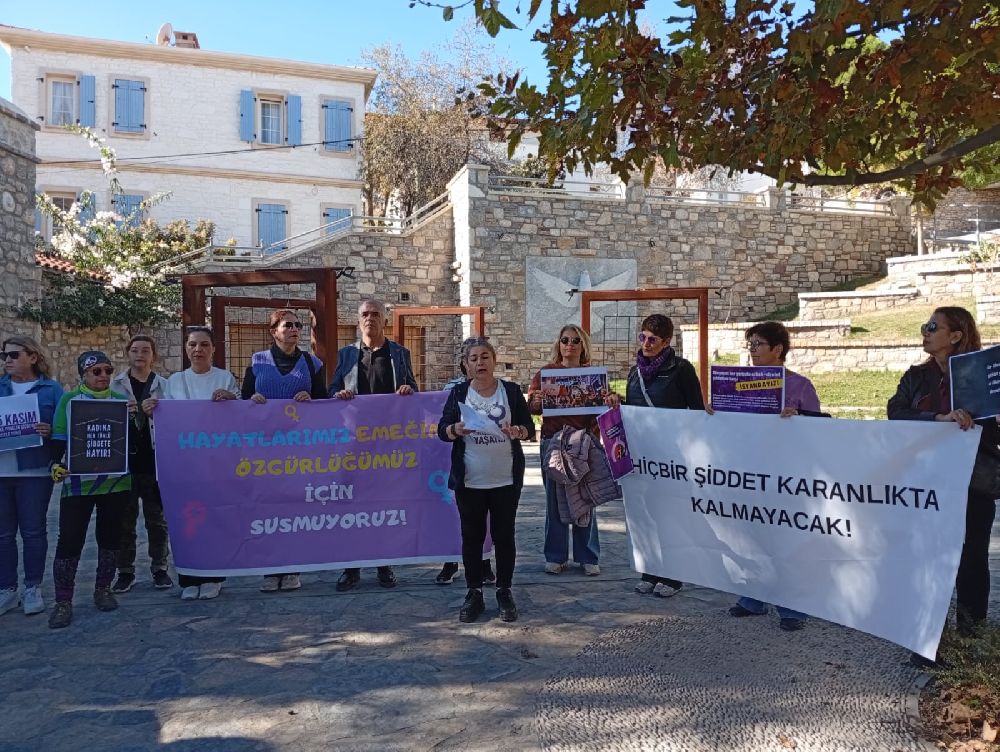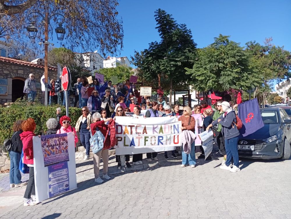 Kadına yönelik şiddetin sistematik ve ideolojik kökenine dikkat çeken kadınlar, Datça Kadın Platformu’nun çağrısıyla Demokrasi Evi önünde bir araya geldi. Burada Cumhuriyet Halk Partisi ve Türkiye İşçi Partisi birer basın açıklaması okudu. Cumhuriyet Halk Partisi Datça İlçe Örgütü Kadın Kolları Başkanı Solmaz Sarı yaptığı açıklamada; ”Bugün burada sadece bir günü değil, bir dünya düzenine karşı kadınların yüzyıllardır süren isyanını konuşuyoruz. 25 Kasım, Mirabel Kardeşlerden bugüne uzanan o dev kadın mücadelesinin adıdır. Ve biz biliyoruz ki: Bu ülkenin karanlığına rağmen, kadınların dayanışması hâlâ en büyük ışık, en büyük cesarettir. Bu ülkede kadınları öldüren, bireysel bahaneler değil; erkek egemen zihniyetin bizzat kendisidir.” dedi.